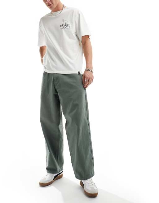 Obey – Big Wig – Kakifärgade baggy byxor med tvättad finish