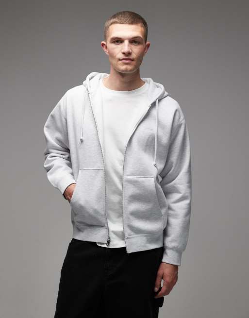 Obey – Established Works – Ljusgrå huvtröja med tjock dragkedja