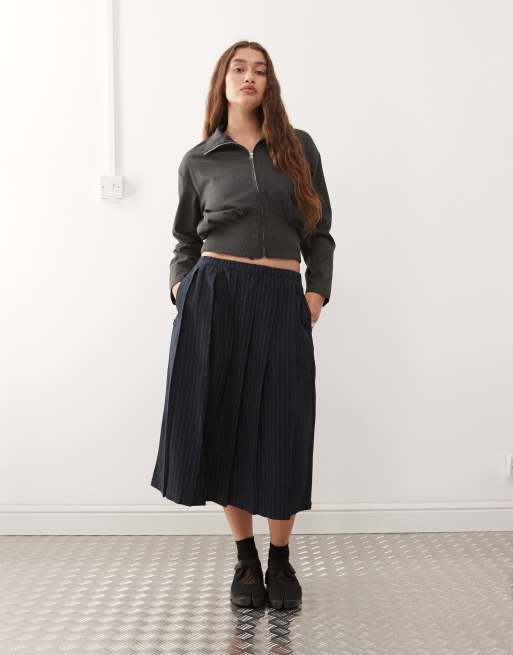 Obey – Madeline – Marinblå, kritstrecksrandig minikjol med veck