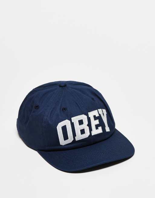 Obey – Marinblå keps i collegestil med 6 paneler, logga och spänne