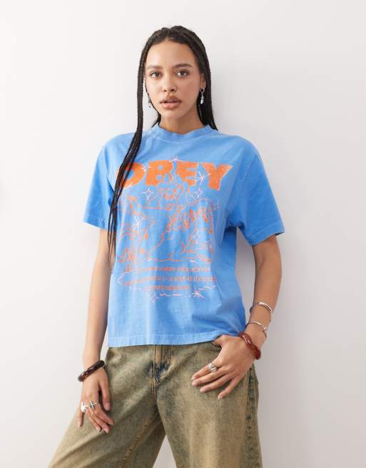 Obey – Spirit – Blå t-shirt med tryck och logga