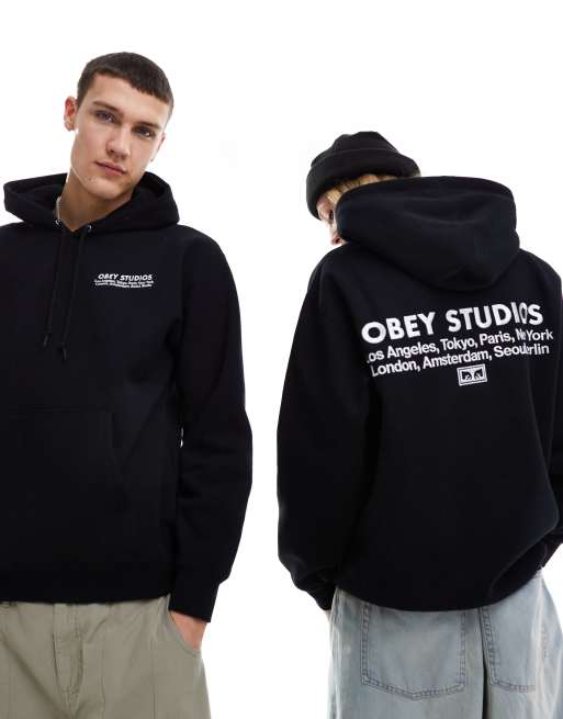 Obey – Svart huvtröja i unisex-modell med "Studios"-tryck på ryggen