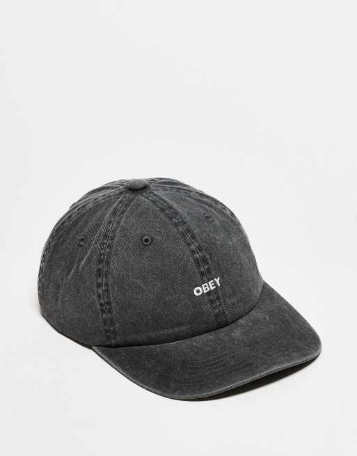 Obey – Svart, tvättad keps med 6 paneler, logga och spänne