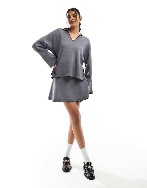 Object – Grå, stickad skaterkjol med kontrastfärgade detaljer, del av set