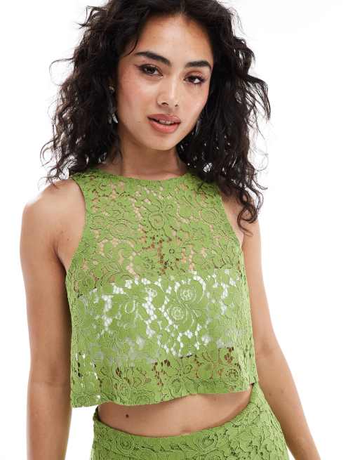 Object – Grönt linne av spets i kort design