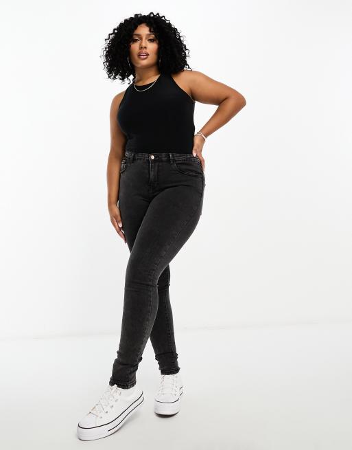 Only Curve – Svarta stentvättade skinny jeans