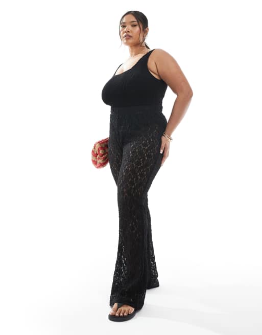 ONLY Curve – Svarta, utsvängda byxor i spets