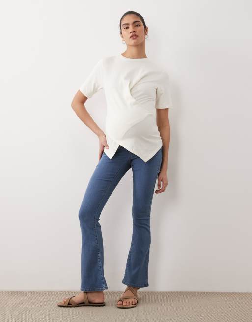 ONLY Maternity – Mellanblå, utsvängda jeans med push up-design