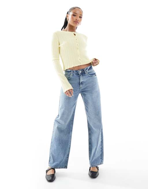 ONLY Petite – Ella – Mellanblå, raka jeans med medelhög midja