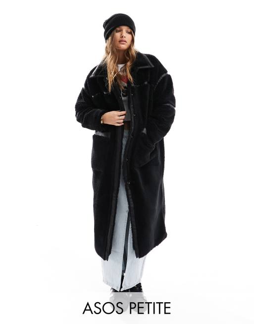 Only Petite – Svart lång kappa i fårskinnsimitation