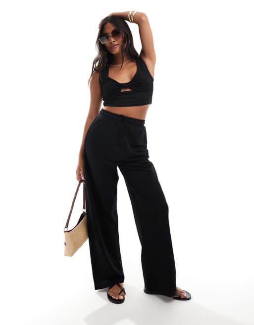 ONLY Petite – Svarta byxor med vida ben, del av set