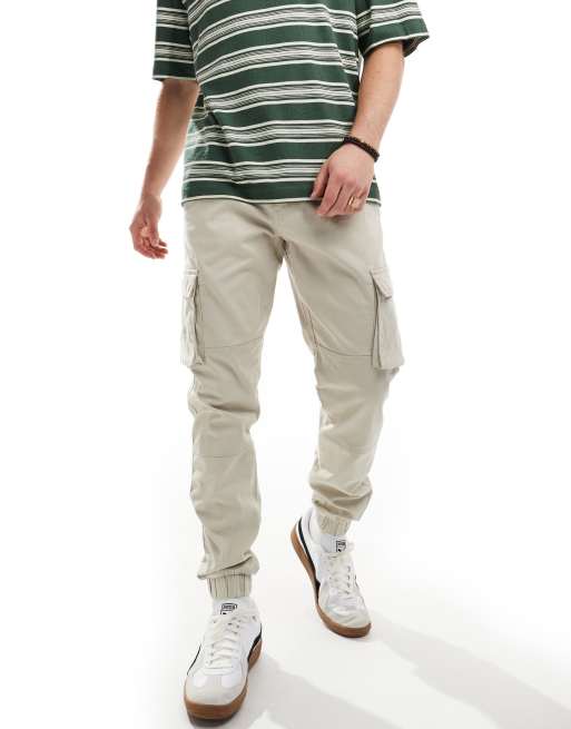 Only & Sons – Beiga, avsmalnande cargobyxor med muddar