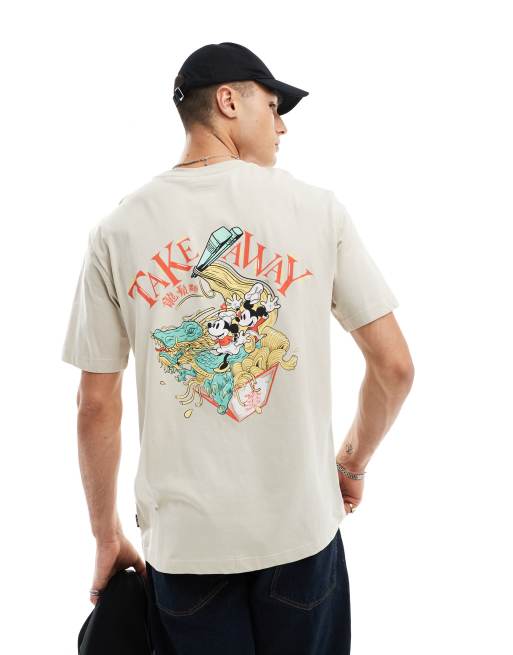 Only & Sons – Beige t-shirt i oversize med Musse Pigg-tryck baktill