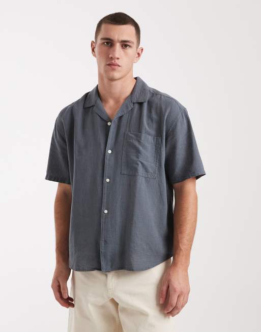 ONLY & SONS – Blågrå skjorta i linnemix med platt krage och avslappnad passform