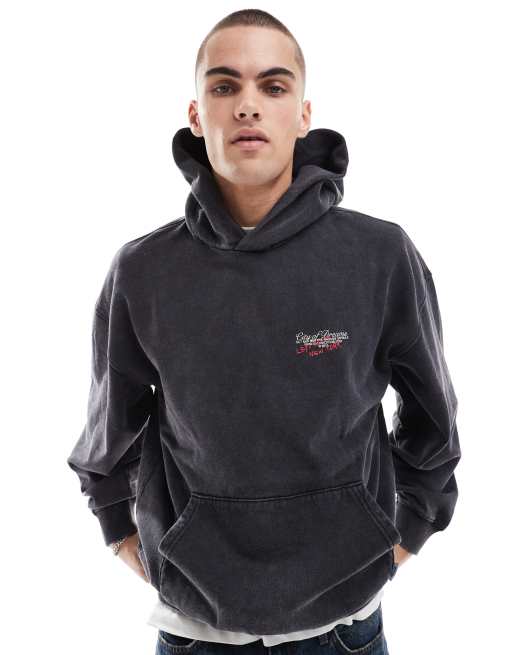 ONLY & SONS – Bleksvart huvtröja med avslappnad passform och NY-tryck