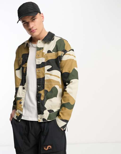 Only & Sons – Kamouflagemönstrad arbetsjacka av twill i oversize