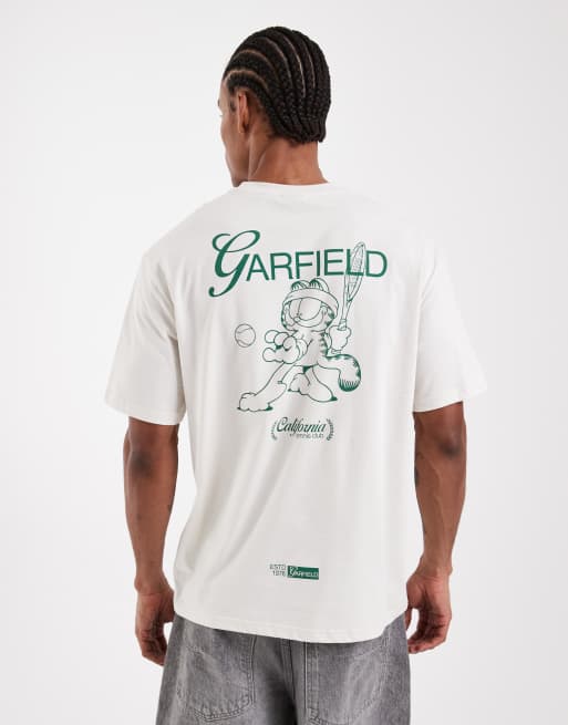 ONLY & SONS – Krämvit, avslappnad t-shirt med Garfield-tryck baktill