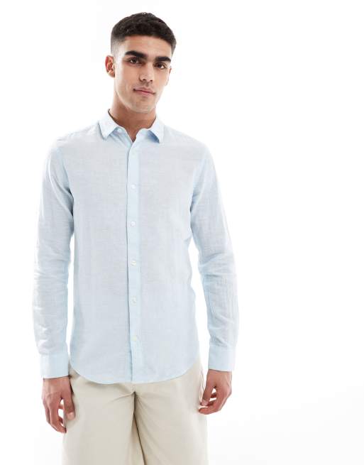 ONLY & SONS – Ljusblå, långärmad skjorta i linnemix
