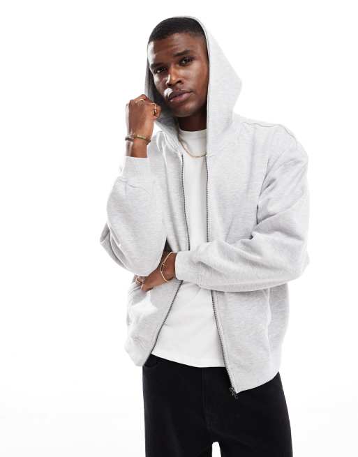 Only & Sons – Ljusgrå huvtröja i oversize med dragkedja
