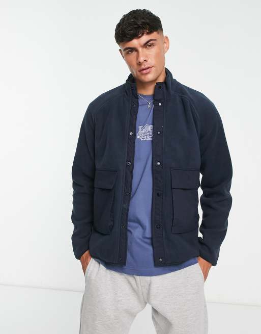 Only & Sons – Marinblå fleecejacka med kontrastfärgade fickor