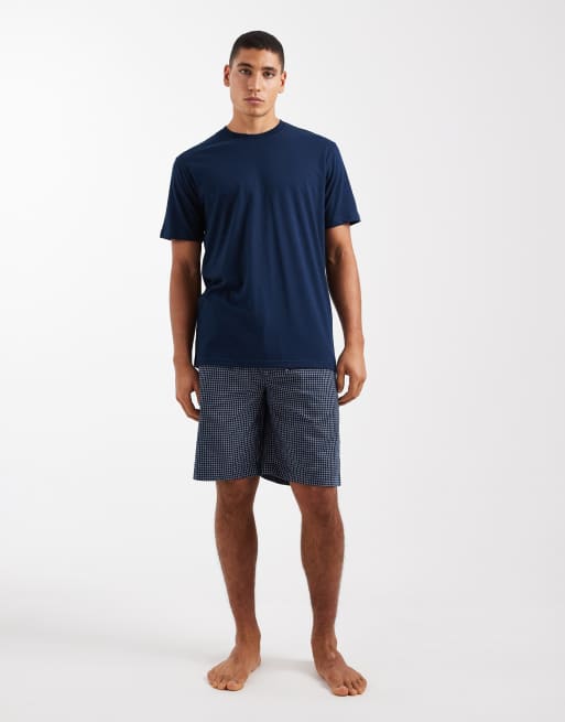 ONLY & SONS – Marinblå och vit pyjamas med shorts och t-shirt