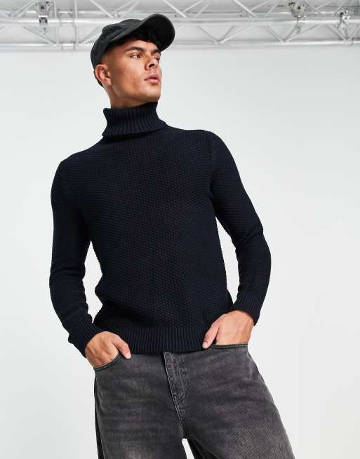 Only & Sons – Marinblå, strukturstickad polotröja