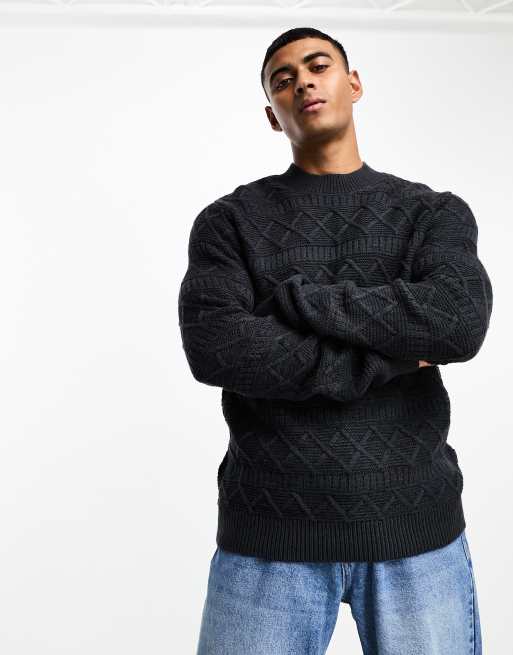 Only & Sons – Marinblå, strukturstickad tröja med rund halsringning