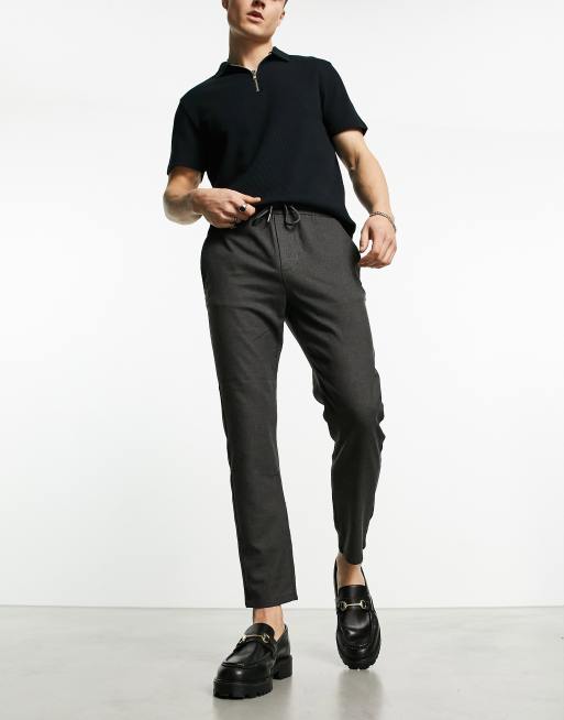Only & Sons – Mörkgrå, avsmalnande byxor med elastisk midja