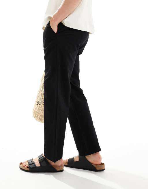 Only & Sons – Svarta byxor i linnemix med ledig passform