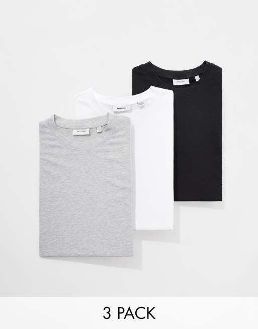 Only & Sons – Svarta, vita och ljusgrå t-shirts i extra oversize, 3-pack
