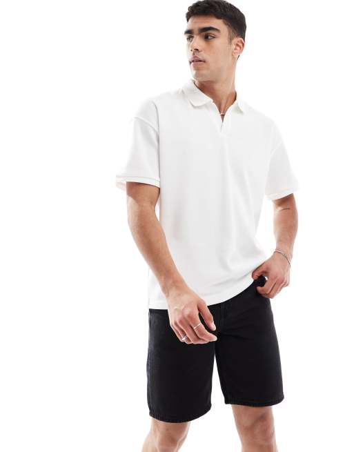 ONLY & SONS – Vit pikétröja i oversize med slits vid halsringningen