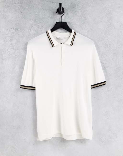 Only & Sons – Vit, stickad pikétröja med kantrand