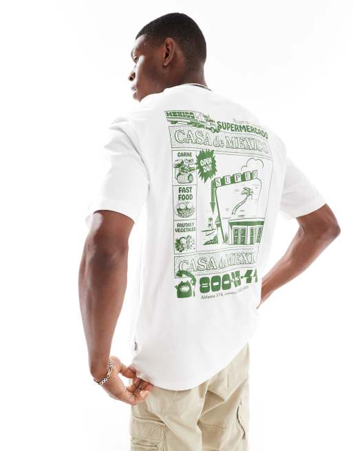ONLY & SONS – Vit t-shirt i oversize med Mexico-tryck baktill