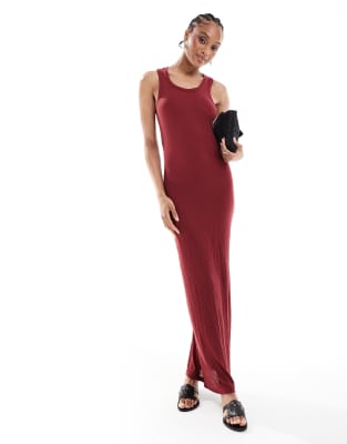 ONLY Tall – Mörkröd, ribbad maxiklänning