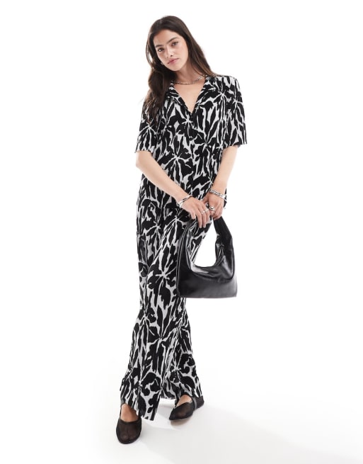 ONLY – Abstrakt blommönstrat set med skjorta och byxor