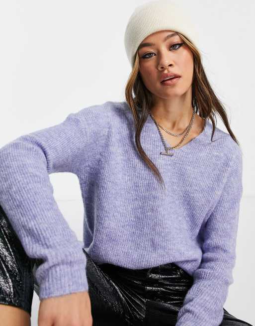 Only – Blåmelerad tröja i oversize med v-ringning