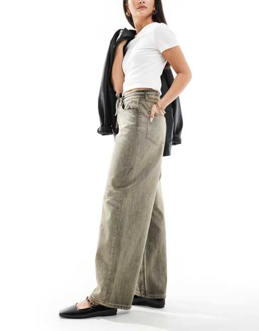 ONLY – Bleecker – Blekgrå jeans med barrelben och knytning i midjan