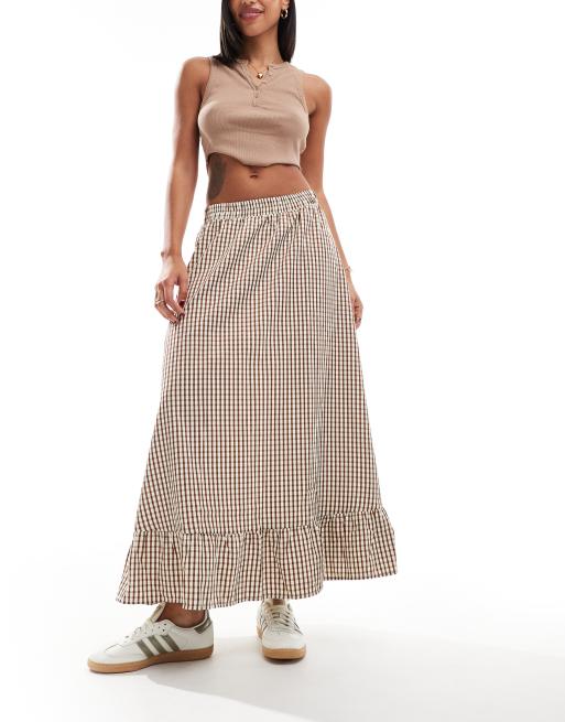 ONLY – Brun, ginghamrutig maxikjol