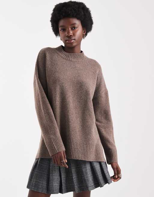 ONLY – Brun tröja i oversize med hög krage