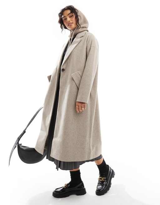 ONLY – Brungråmelerad, lång, formell kappa