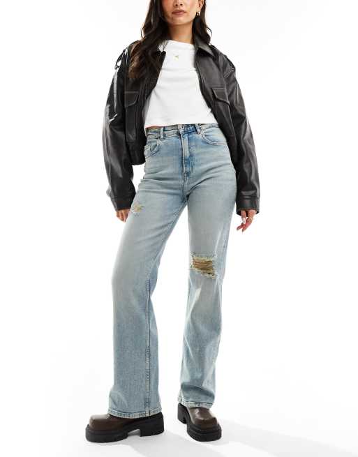ONLY – Camille – Ljusblå jeans med vida ben, hög midja och revor