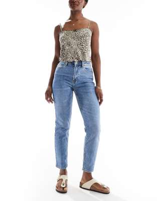 Only – Emily – Mellanblå raka jeans med hög midja