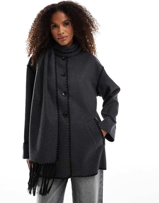 ONLY – Grå kappa med halsduk i yllelook