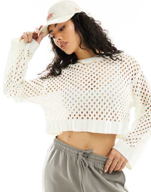 ONLY – Gräddvit, hålstickad och virkad topp
