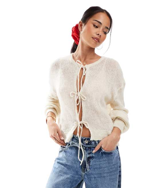 Only – Gräddvit, stickad kofta med knytdetaljer
