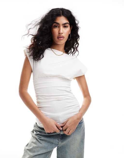 ONLY – Gräddvit topp med indragen midja