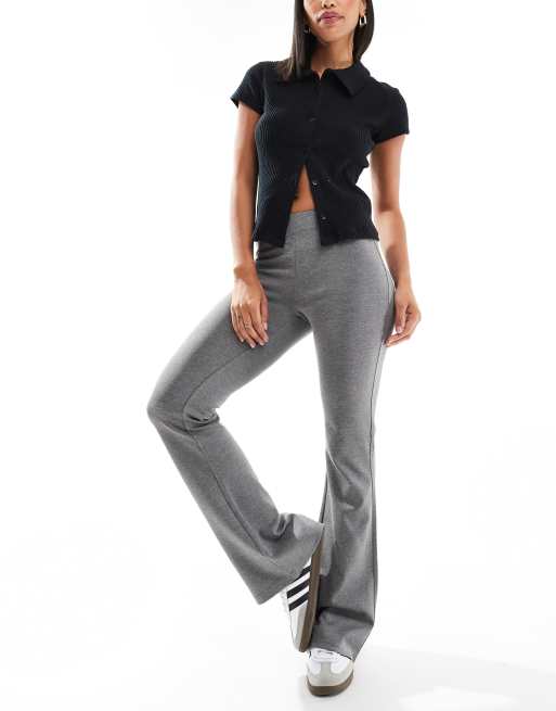 ONLY – Gråmelerade, utsvängda byxor med hög midja
