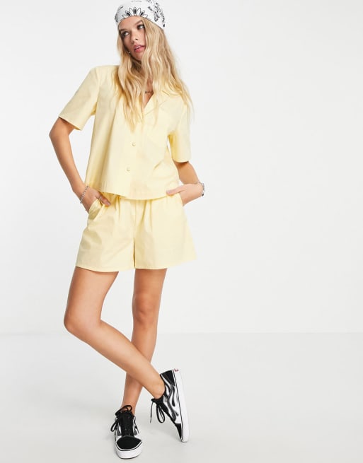 Only – Gult poplinset med skjorta och shorts