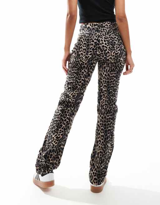 ONLY – Leopardmönstrade jeans med raka ben och hög midja