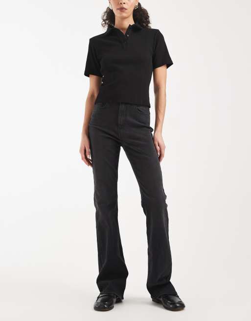 ONLY – Linez – Svarta, tvättade, utsvängda jeans med hög midja